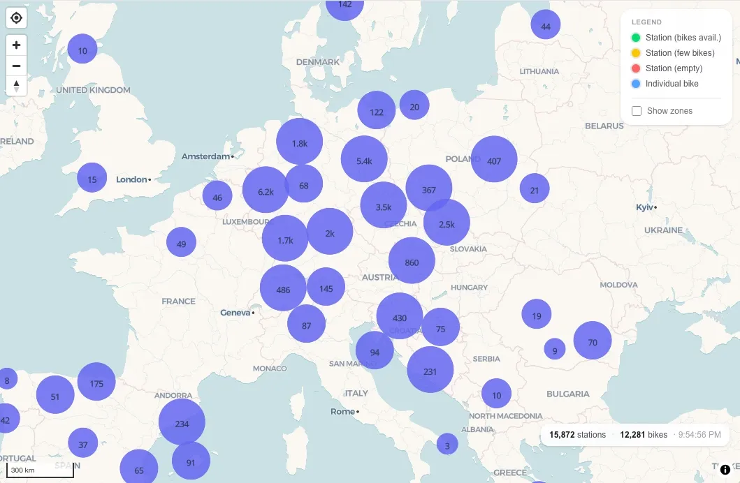 Outside of the map, you can see statistics, leaderboards, and lists of networks, areas, stations, and bikes. Ever wondered which bikes are the most productive and which ones are neglected by everyone?